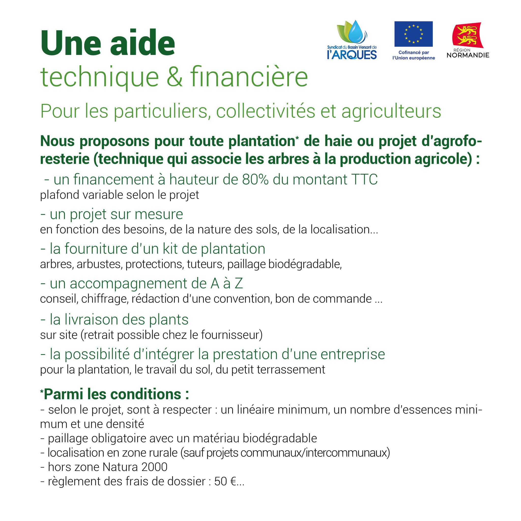 Pour la campagne de plantation 2025-2026, le SMBV Arques propose, pour toute plantation de haie*, une aide technique, administrative et financière aux particuliers, collectivités, et exploitants agricoles volontaires :